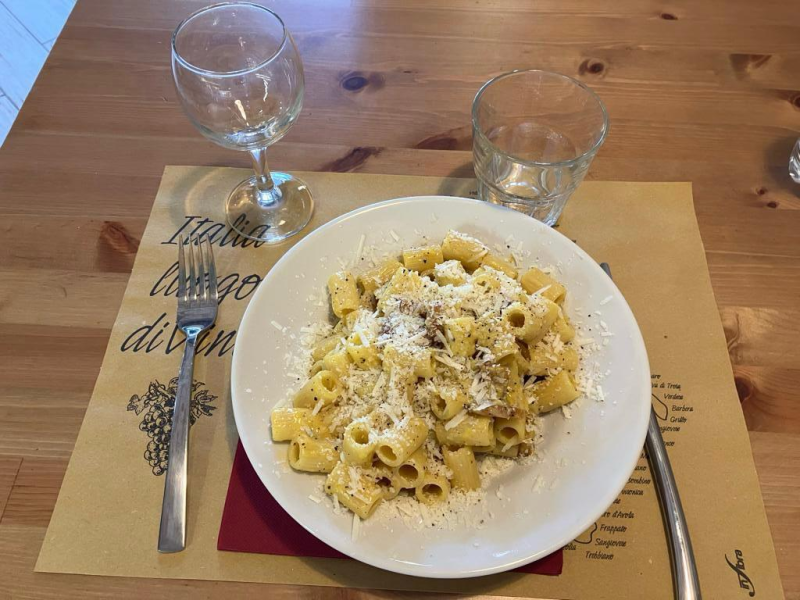 Alla Fraschetta, invece, ogni pranzo è un viaggio nei sapori romani. Aperta solo a pranzo dalle 12.00 alle 15.30, propone piatti preparati con ingredienti a km 0, serviti in un ambiente suggestivo e rustico, ricavato da un'antica stalla medievale.